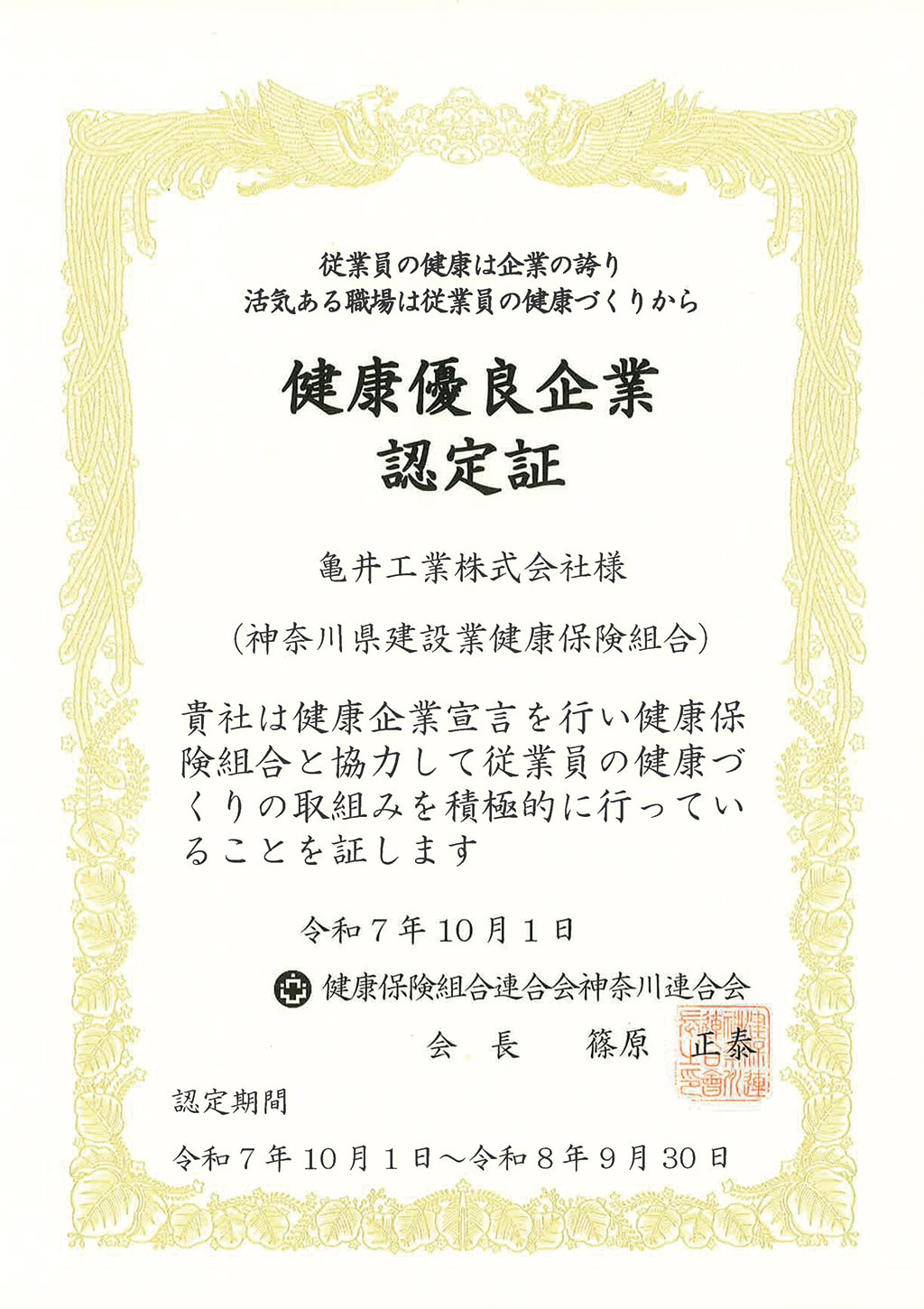 弊社は健康保険組合連合会神奈川連合会より『健康優良企業』に認定されました。