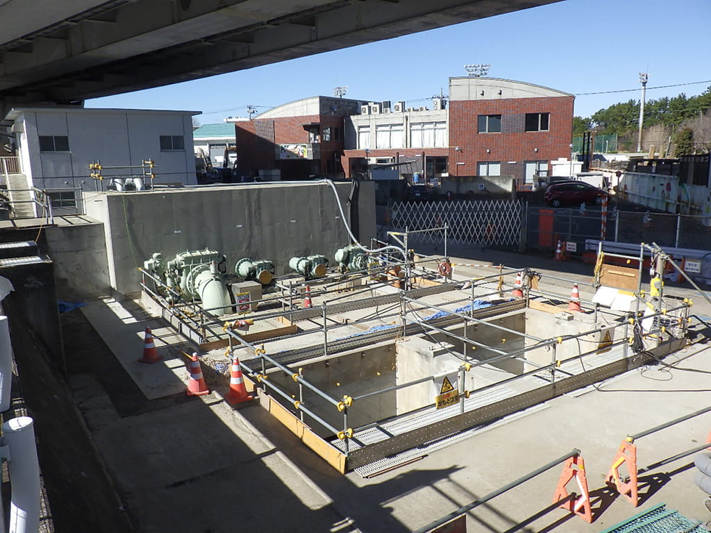 | 現場代理人のコメント | 本工事は、茅ヶ崎市発注による中島ポンプ場の耐震化工事で、工事期間は令和6年12月~令和8年3月となります。 中島ポンプ場は、中島地区における雨水排水経路の流末となり、地下施設に溜まった大量の水を水中ポンプで汲み上げ、近くの小出川へ排水する役割を担っています。そのため、施設の機能を阻害する事なく耐震化工事を行う必要があり、施工手順や方法の十分な検討に加え、大雨時の対策など事前準備が重要となります。 そのような中、関係各所との打合せの中で知ったのですが、本施設は約30年程前に当社が築造したものであり、そのことについて感謝の言葉をいただく場面がありました。かつての諸先輩方の懐かしい名前にも触れ、当社の歴史を感じるとともに現在も問題なく機能していることに誇りと喜びを感じました。 重要なインフラ施設であることを踏まえ、我々も後世に残る高品質なものを提供できるよう、引き続き邁進します。 |